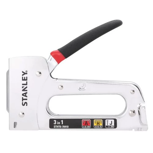 Cette agrafeuse 3 en 1 TR120 de Stanley accepte 3 formats d’agrafes dont le type »A » de 4 à 14 mm, »H » de 4 à 14 mm pour la décoration, et le type »J » de 12 à 15 mm. Cet outil est équipé d’un guide-agrafes et d’un système anti-bourrage des agrafes pour plus de précision. De plus, sa poignée soft grip permet une prise en main confortable et la compression aisée de la poignée offre un faible angle d’enclenchement.