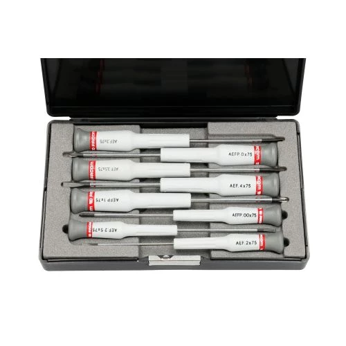 Le coffret 8 tournevis micro-tech® fente Phillips® AEF.J3 est facile à ranger grâce à un étui.