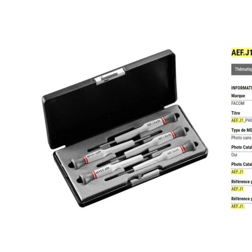 Ce jeu de 5 tournevis Micro-tech de Facom est conçu pour un vissage puissant et précis. Il comprend 4 tournevis à fente et 1 tournevis Phillips. Il est rangé dans un coffret de protection avec un plateau de rangement en mousse.