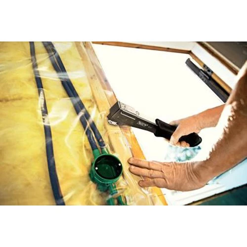 Le marteau agrafeur PRO R311 de la marque Rapid est un outil à l’équilibre parfait avec une poignée en Soft grip antidérapante tout en acier, robuste pour les gros travaux. C’est un outil idéal pour les travaux de fixation et d’isolation comme les plaques de toiture, les matériaux isolants, les pare-vapeurs, les bâches en plastique et la pose d’étiquettes et l’affichage. Ce marteau agrafeur bénéficie d’un tout nouveau mécanisme d’ouverture lui permettant un bon maintien et guidage des agrafes, et est doté d’un mécanisme de chargement rapide par le dessous, sans pièce détachable ainsi qu’un mécanisme d’entraînement d’agrafes réversible pour une plus longue durée de vie. Aussi, il dispose d’une large plaque de protection pour préserver le matériau agrafé.