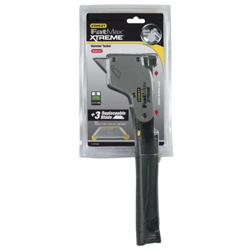 Le marteau agrafeur FATMAX PRO de la marque Stanley est un outil multi-usages : agrafeuse marteau et cutters en un seul outil pour une utilisation intensive sur toitures et isolations. En effet, il est équipé d’une lame amovible pour la découpe des matériaux ainsi que d’une poignée moulée pour une prise en main.