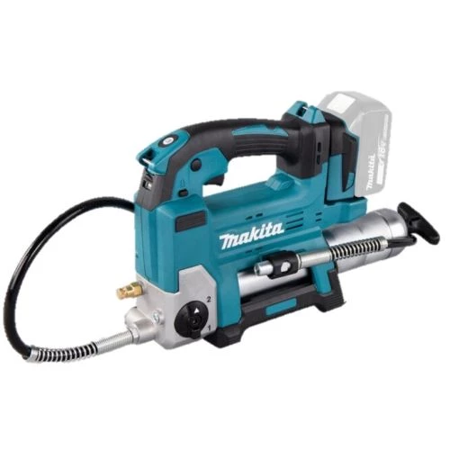 La pompe à graisse DGP180Z de Makita est un pistolet graisseur sans fil compact et léger, alimenté par une batterie Li-ion LXT de 18 V (non incluse) avec une pression maximale de 69 MPa. Elle est idéale pour les travaux d’entretien de machines lourdes, de machines agricoles et d’autres grandes machines pour le graissage. De plus, elle est équipée de deux modes de vitesses, lent et automatique de vitesse. En mode automatique, la pression de chargement est automatiquement augmentée et en cas de blocage, le débit est réduit. Le DGP180Z dispose également d’un éclairage avec deux LED intégrées pour faciliter le travail dans les endroits sombres.