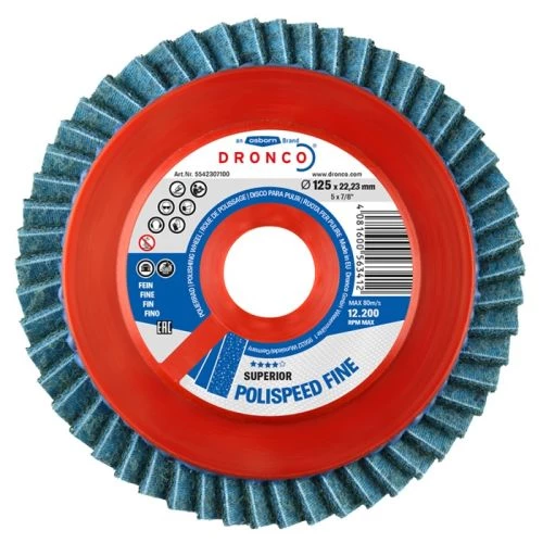 Cette meule de polissage avec rabats verticaux en polaire de polissage est très efficace sur support en plastique renforcé. Le non-tissé flexible s’adapte parfaitement à la pièce. De plus, il peut être utilisé aussi bien sur son bord pour les coins et angles ou bords arrondis que sur sa face. Cet outil permet également le nettoyage, lissage et polissage des cordons de soudure dans les coins, les bords et les soudures d’angle ainsi que l’élimination de la décoloration thermique, des couches d’oxyde ou de fines couches de vernis sur les métaux.