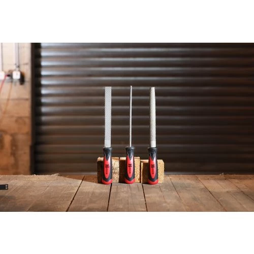 Ce jeu de 3 râpes à bois emmanchées de la marque Hanger vous permettra d’aplanir, arondir et rectifier les surfaces, pièces et reliefs travaillés. Leur poignée bi-matière est antidérapante pour vous permettre une utilisation confortable. Les râpes à bois Hanger sont en acier carbone de haute qualité.