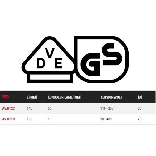 Ce tournevis détecteur basse tension AV.HT est un testeur de tension électrique équipé d’un témoin lumineux.