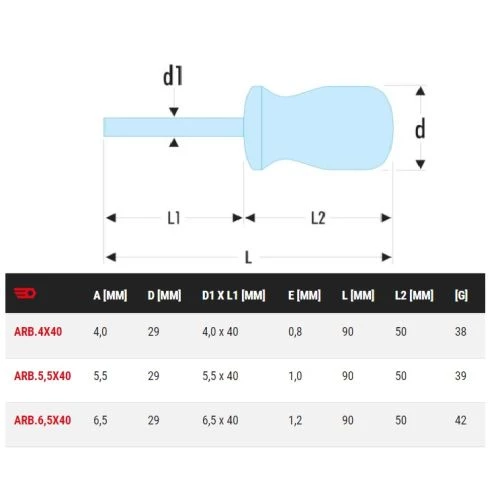 Le tournevis Isoryl ARB est un outillage à main conçu pour (de)visser les vis à fentes. Sa lame courte est faite pour des travaux à dégagement réduit.