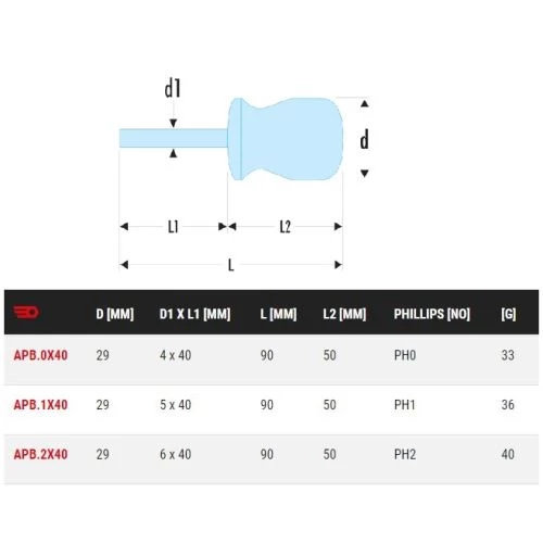 Ce tournevis Isoryl pour vis cruciformes Phillips® lame courte APB est un outil pour des travaux à dégagement réduit.