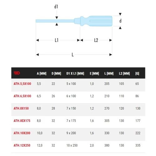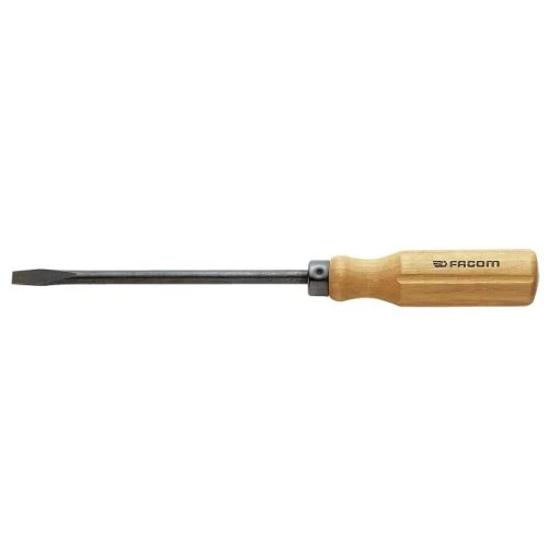 Ce tournevis manche bois pour vis à fente lame forgée ATH de la marque Facom est muni d’une lame traversante pour libérer une vis bloquée à l’aide de chocs légers. En outre, la lame forgée et traitée entièrement sur toute sa longueur lui procure une longévité et plus de robustesse.