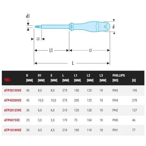 - Chaque tournevis est testé individuellement à 10000 Volts pendant 10 seconde VDE approuvé, en fin de cycle de fabrication